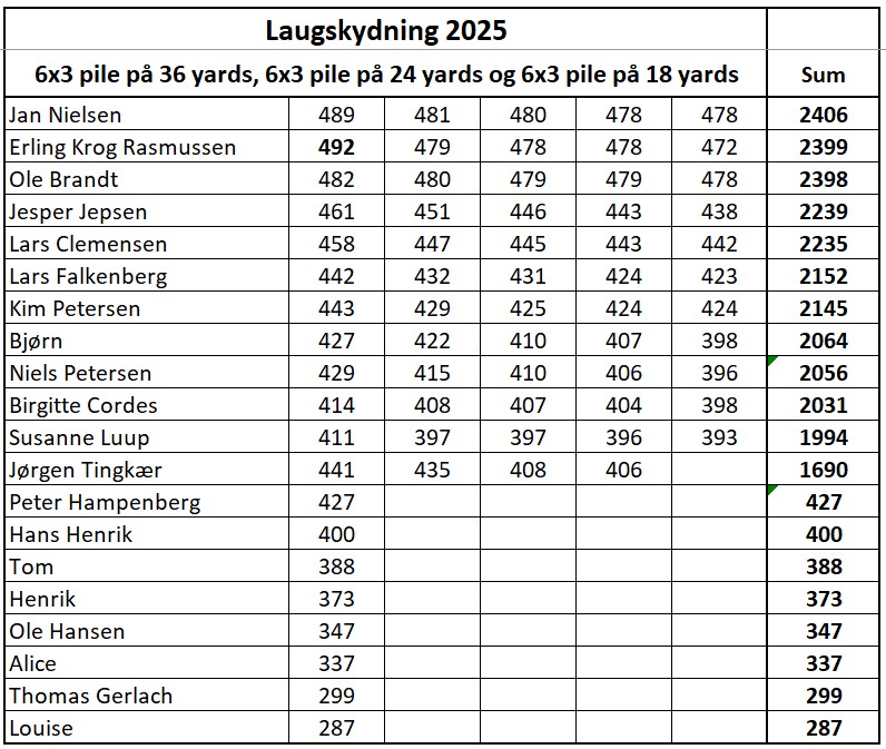 • Laugskydningsresultater 2026